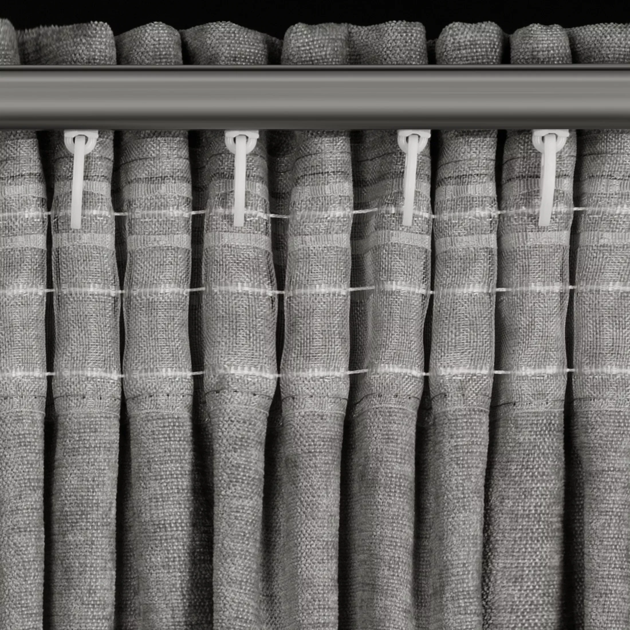 | Využitelná šířka garnýže | pro zavěšení na řasící pásku lze využít celou šíři garnýže - včetně bočních částí od držáků garnýže po koncovky, pro zavěšení do tunýlku za páskou lze vždy využít pouze část garnýže mezi jeho držáky |