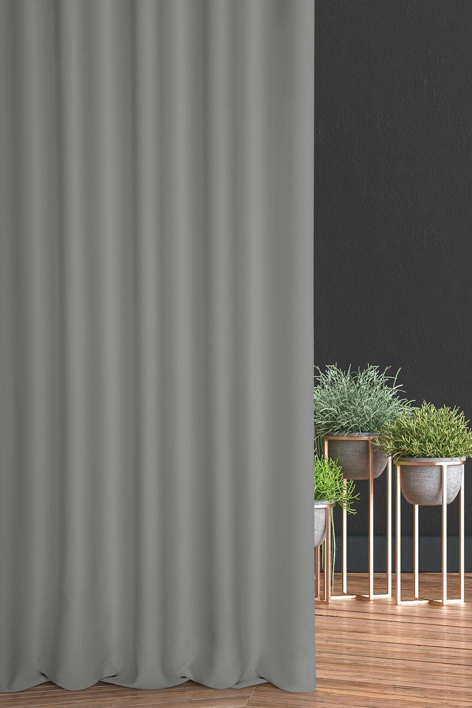 Závěs Blackout2 šitý na zakázku na míru, s řasící páskou, hustě tkaná, nadčasová hladká látka s jemně prosvítajícím tmavším odstínem, polomatná, barva šedá tmavší