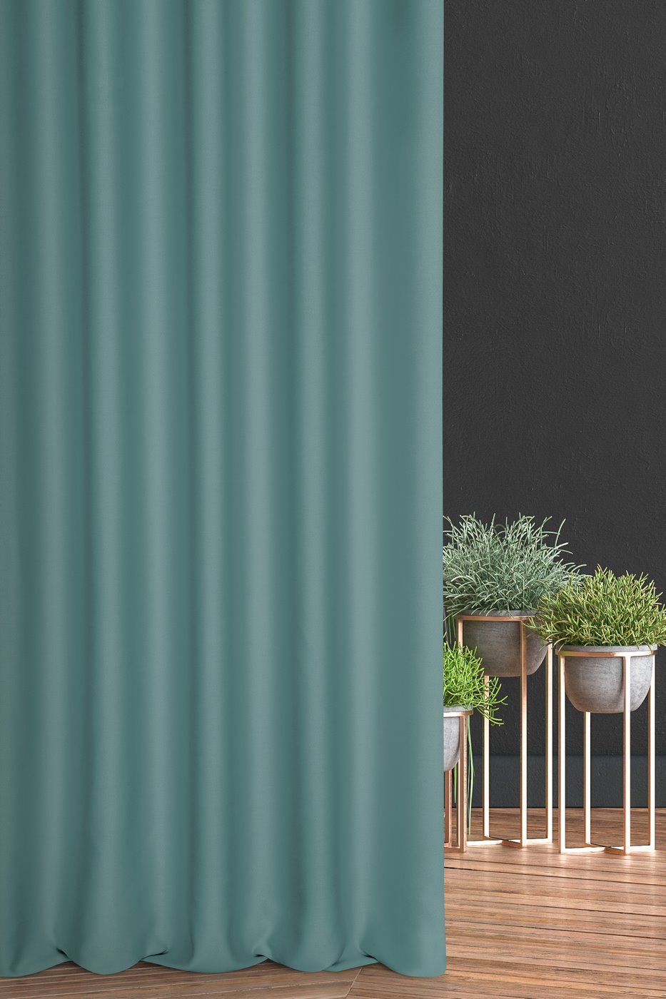 Závěs Blackout2 šitý na zakázku na míru, s řasící páskou, hustě tkaná, nadčasová hladká látka s jemně prosvítajícím tmavším odstínem v mořské barvě