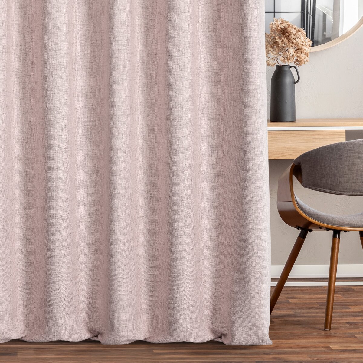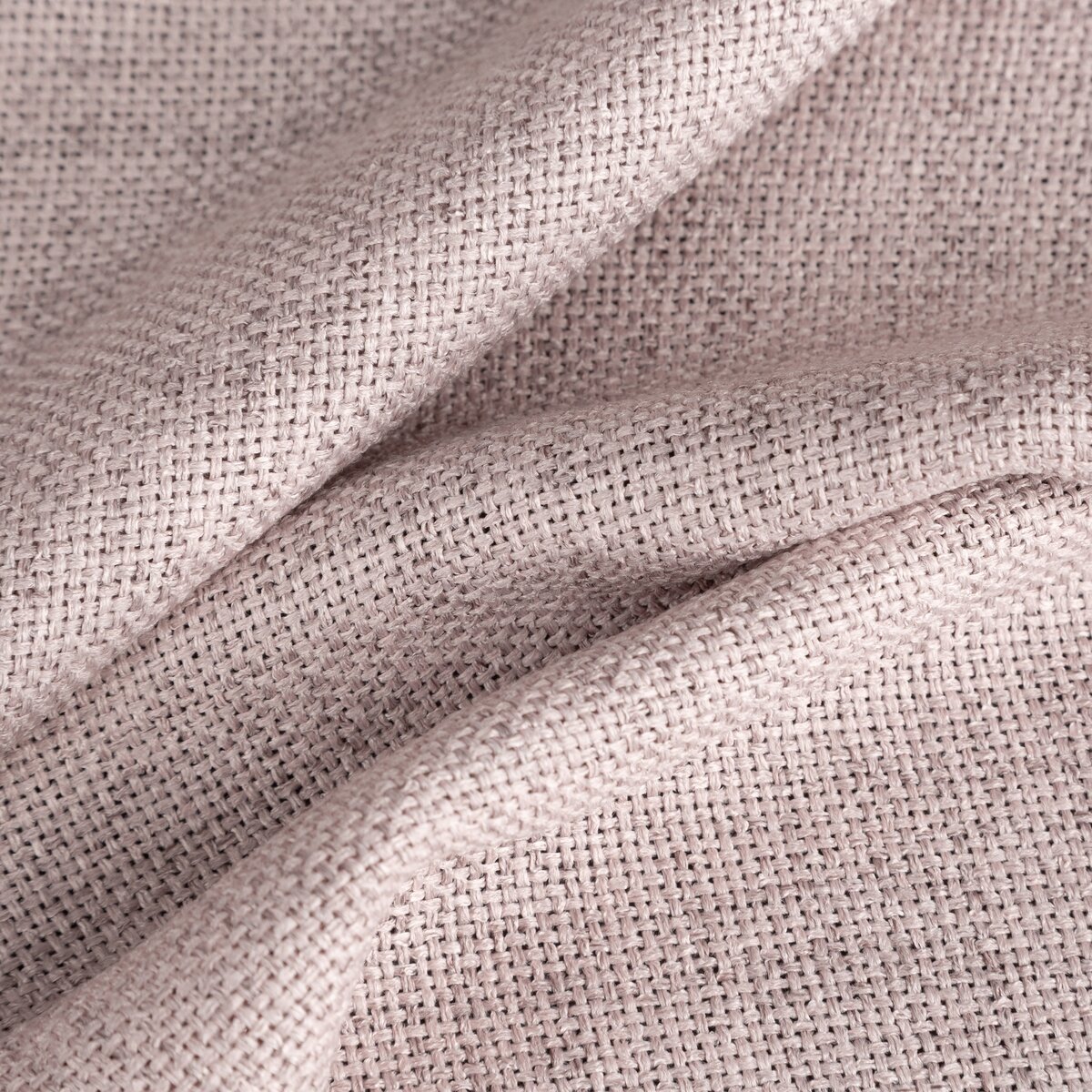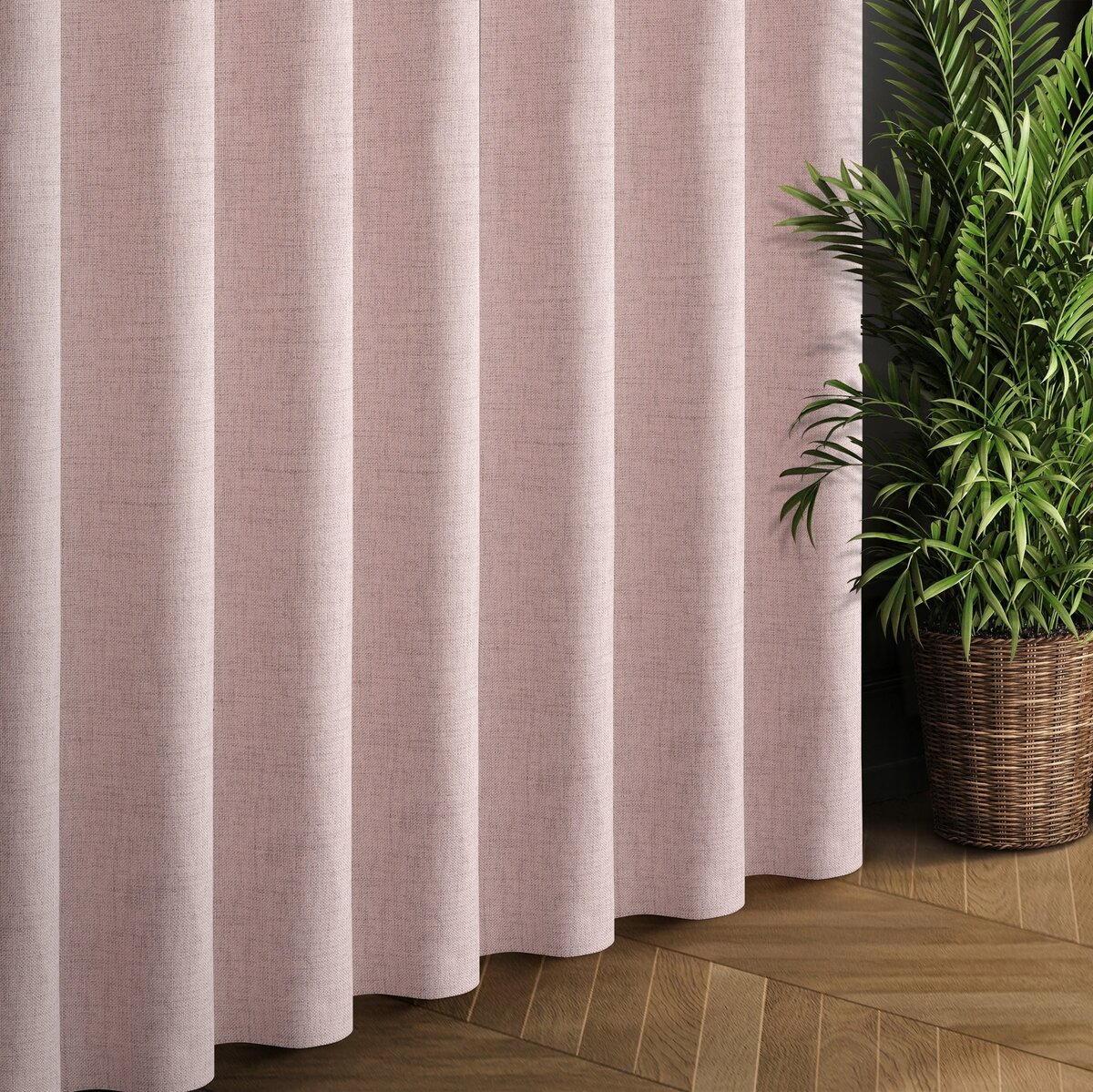 Závěs Jula3, šití na míru, barva pudrová růžová melanž, volněji tkaná látka, přírodní plátěný vzhled s viditelnou strukturou