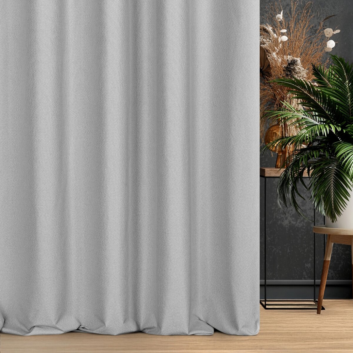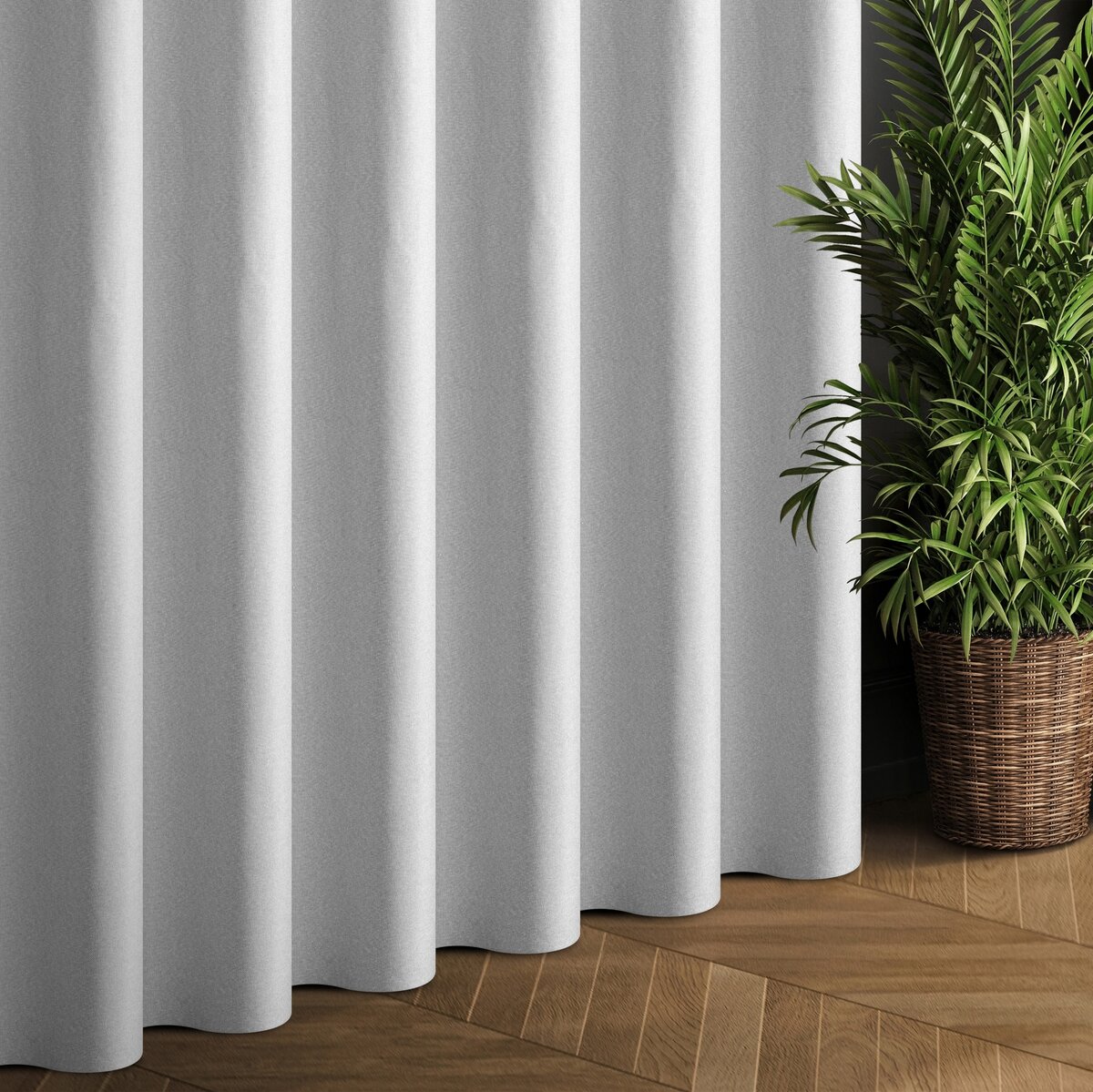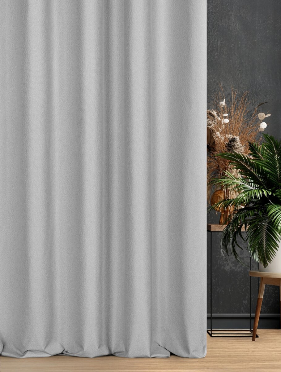 Závěs Violi Premium, šití na míru, barva šedostříbrná, jemně viditelný splot, látka 100% blackout zatemňující