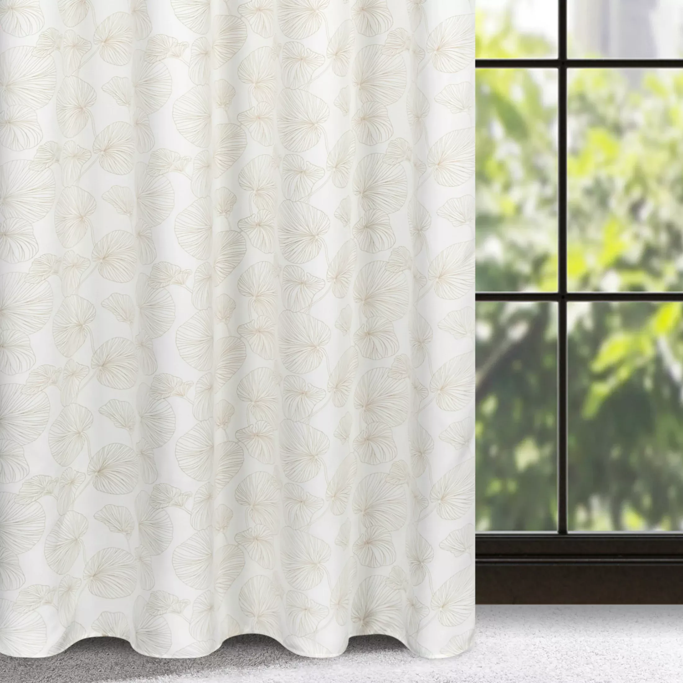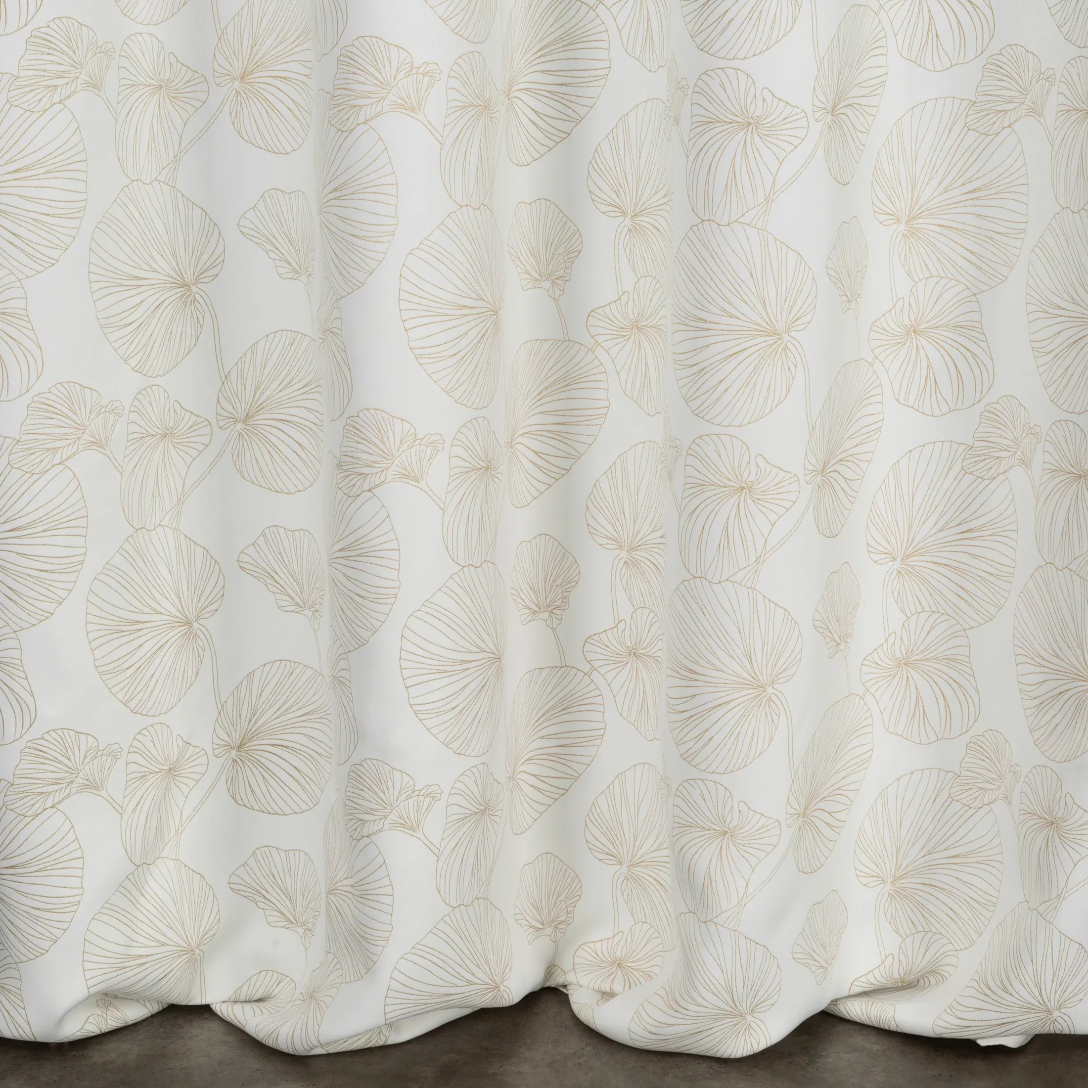 Závěs Marigold, typ blackout, bílý se zlatavým potiskem vzorem leknínů