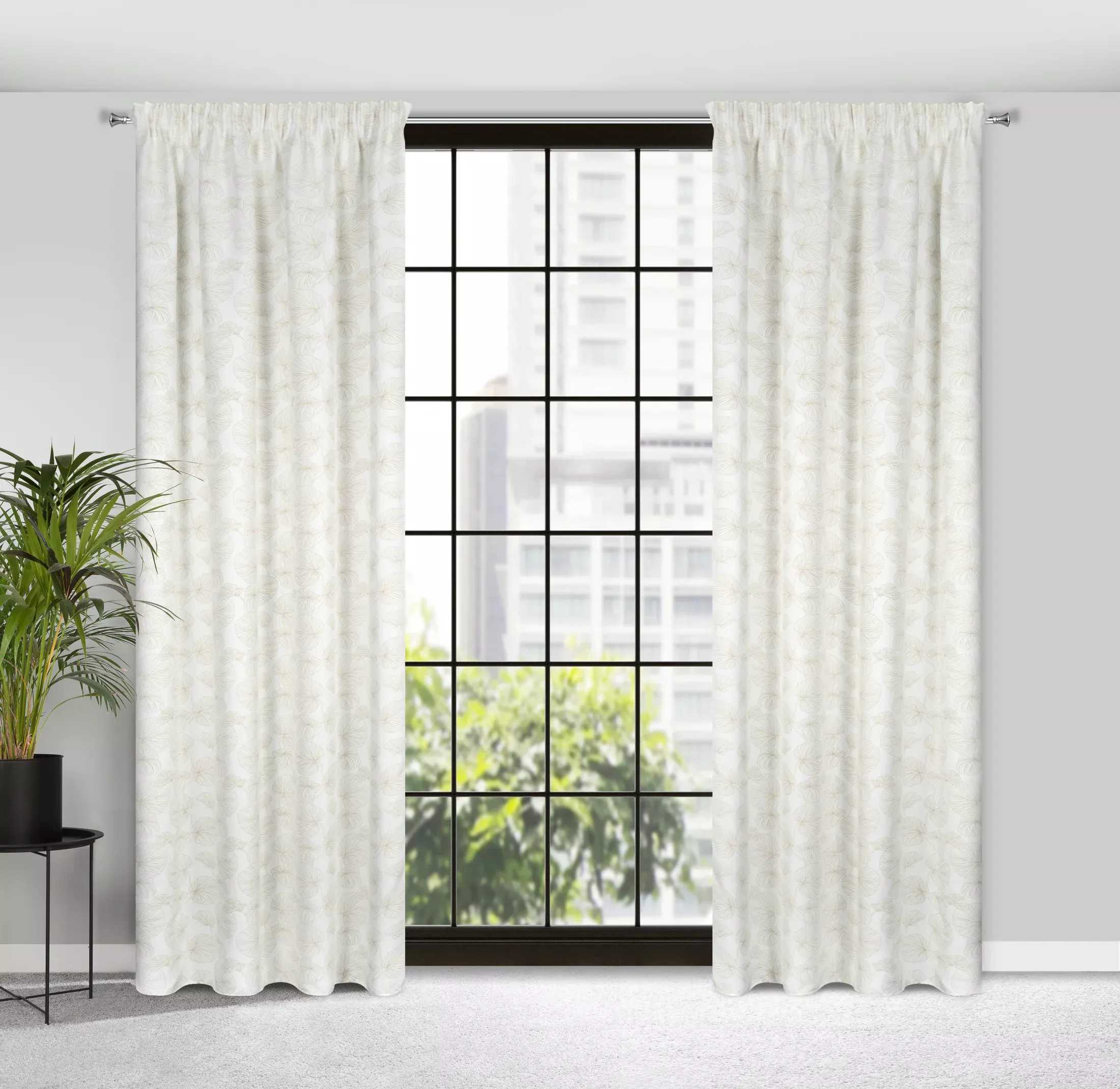Závěs zatemňující Marigold, bílý se zlatavým potiskem, řasící páska nebo tunýlek, 140x300cm, výšku lze zkrátit