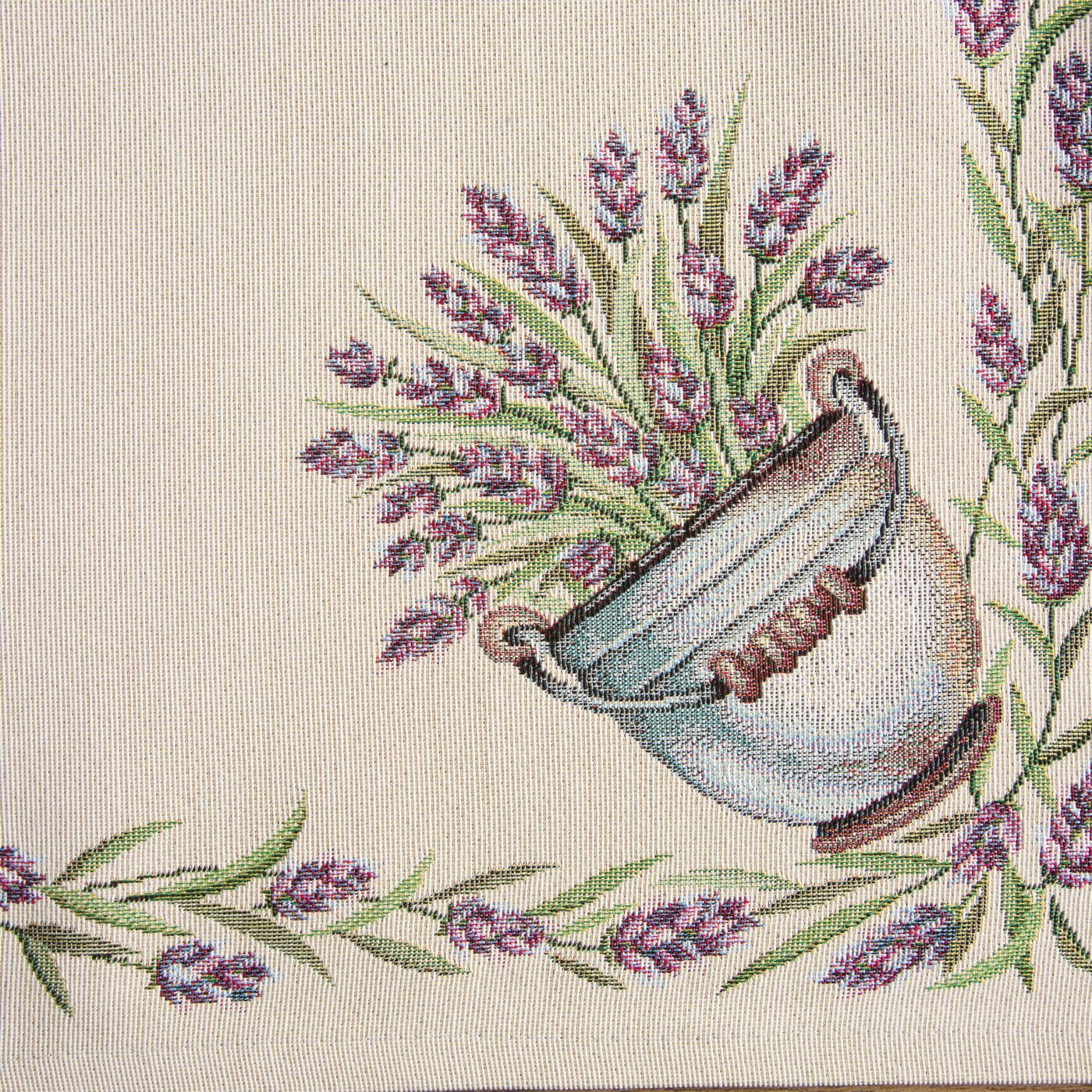 Stolní běhoun GOB1222N Provence Vintage, žakárová látka s motivem Provence, podklad přírodní ecru barva