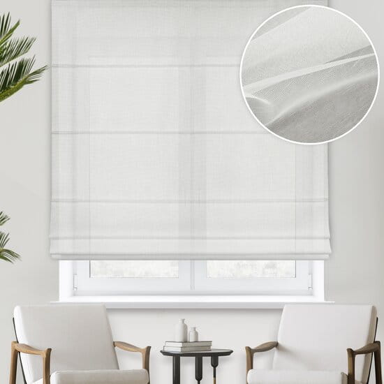 Záclonová římská roleta Aden, krémová, mikrosíťka s naznačeným vzorem deštíku, není třeba žehlit, šití na míru