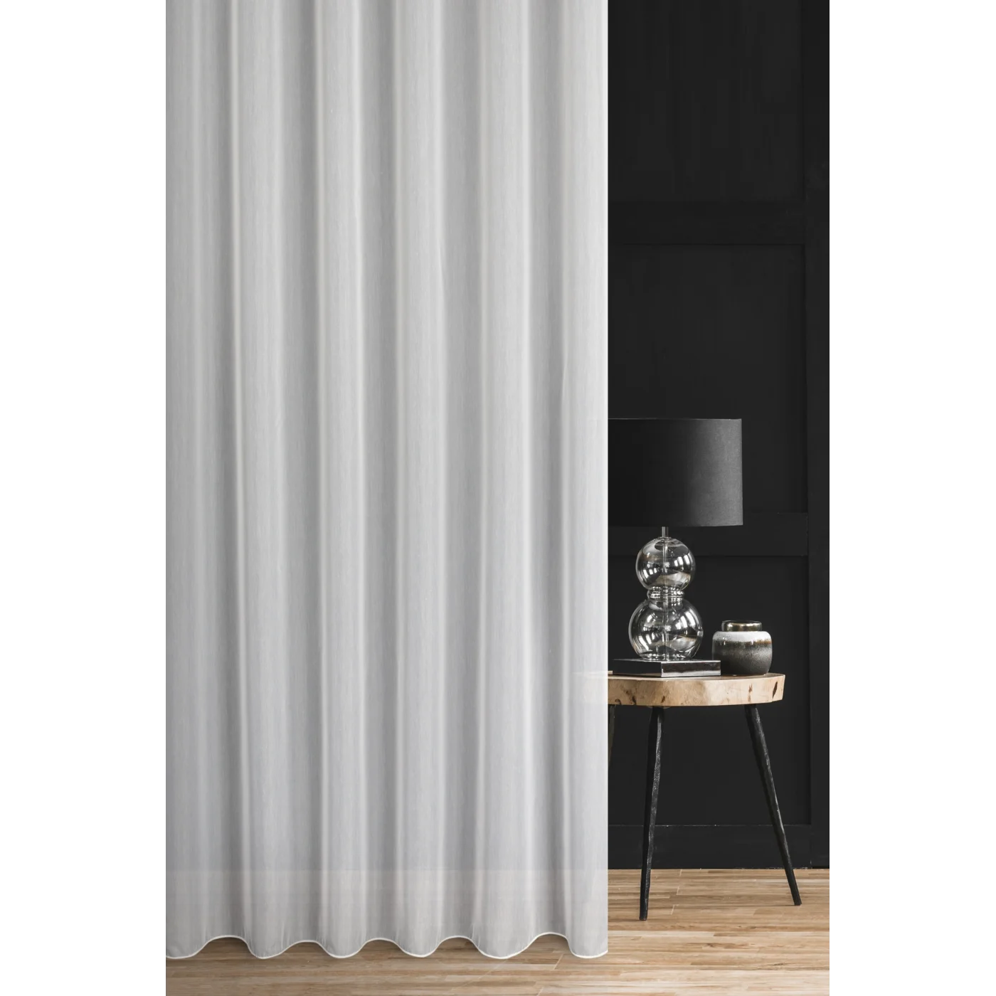 Záclona F3244, bílá, matná, hustěji tkaná záclonovina, jemný vzor deštíku, šití na míru, XXL výška - lze volit až 315cm, dolní okraj zátěžový steh.