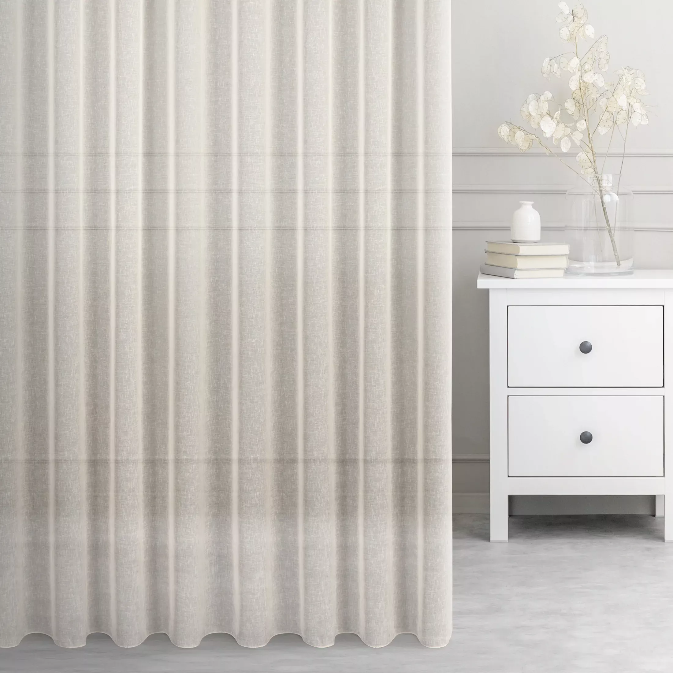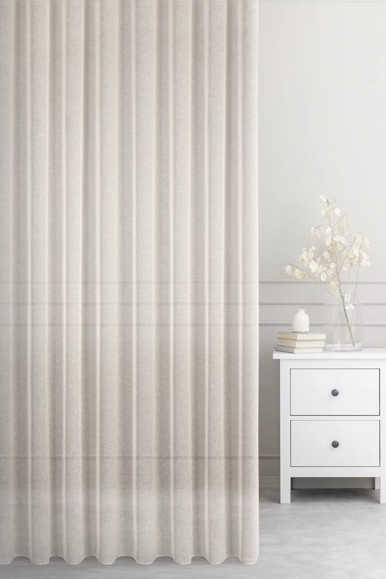 Záclona opticky působí uklidňujícím dojmem, spolehlivě ochrání interiér před ostrým slunečním svitem a zajistí denní soukromí