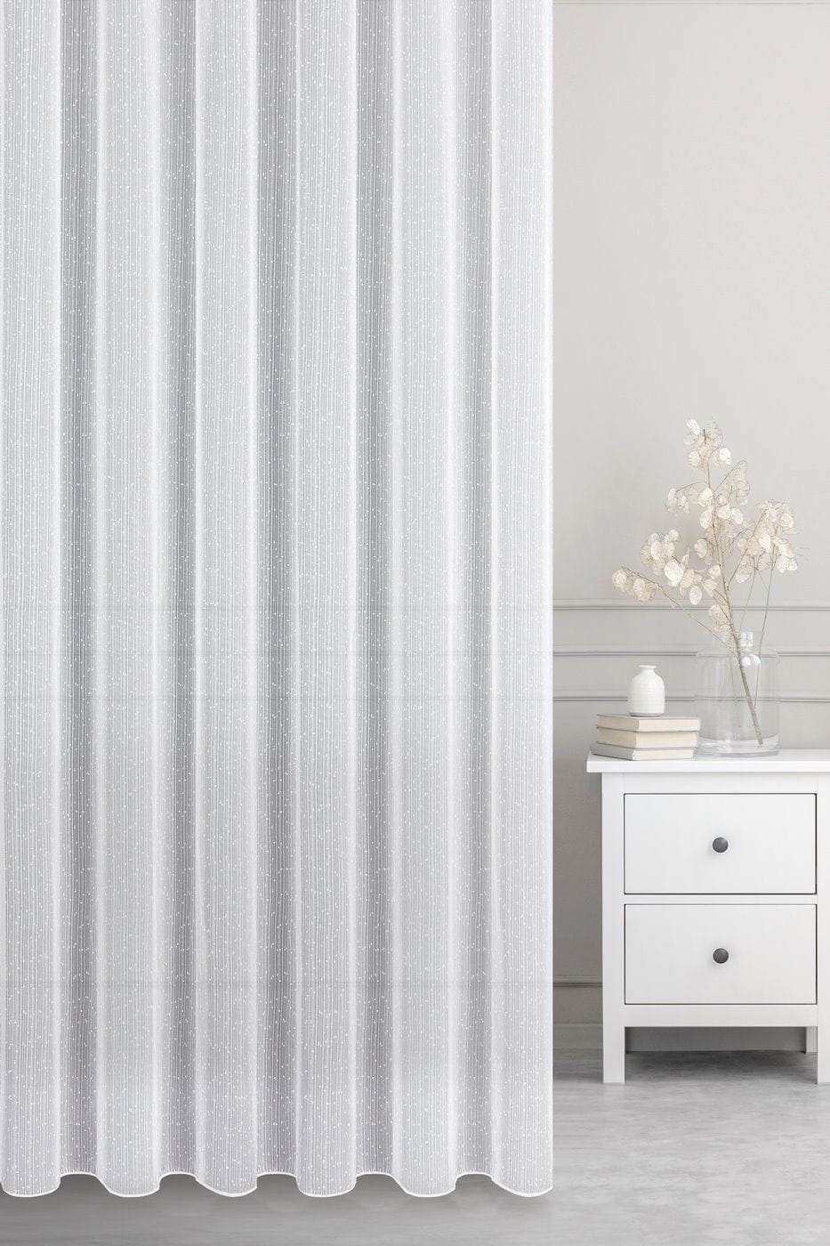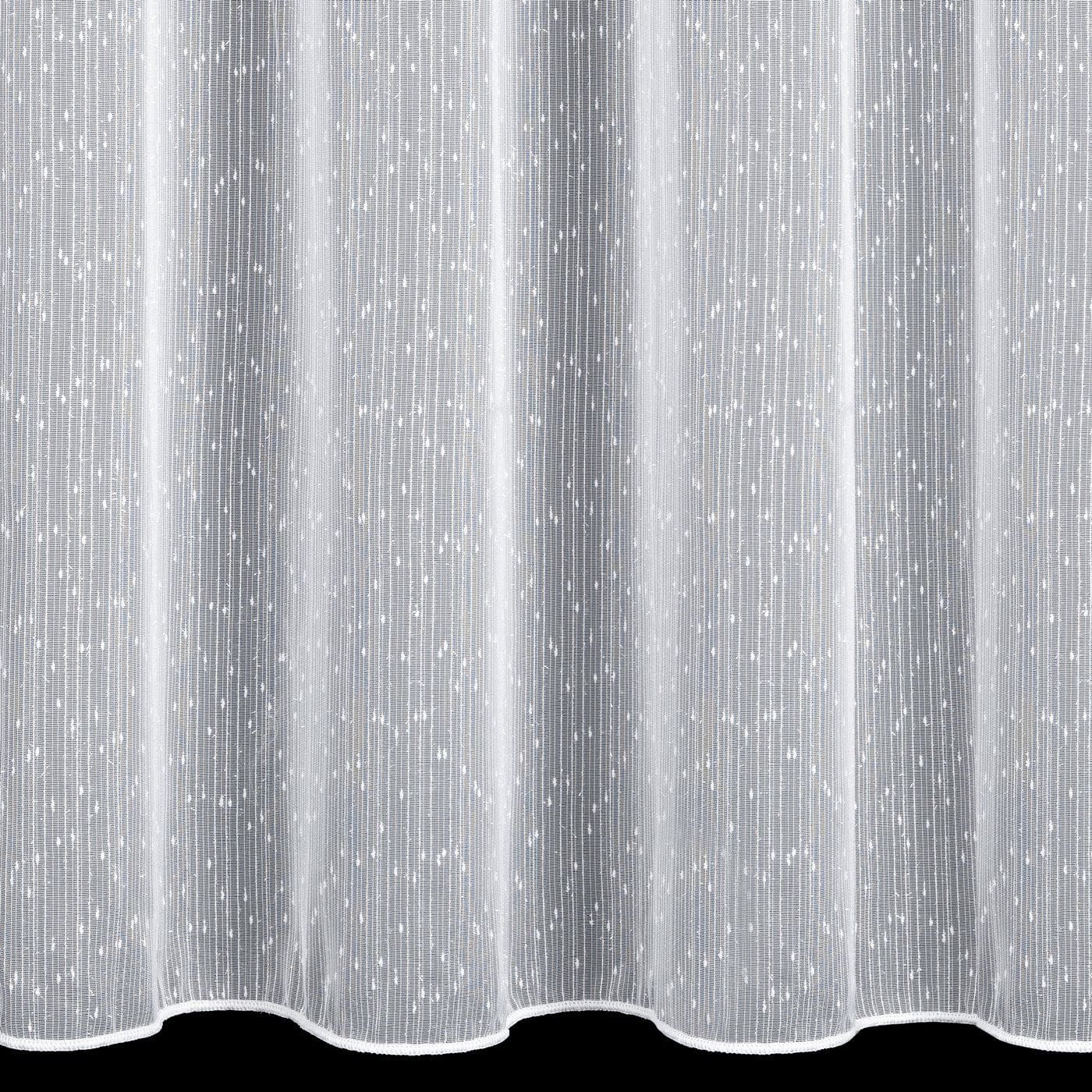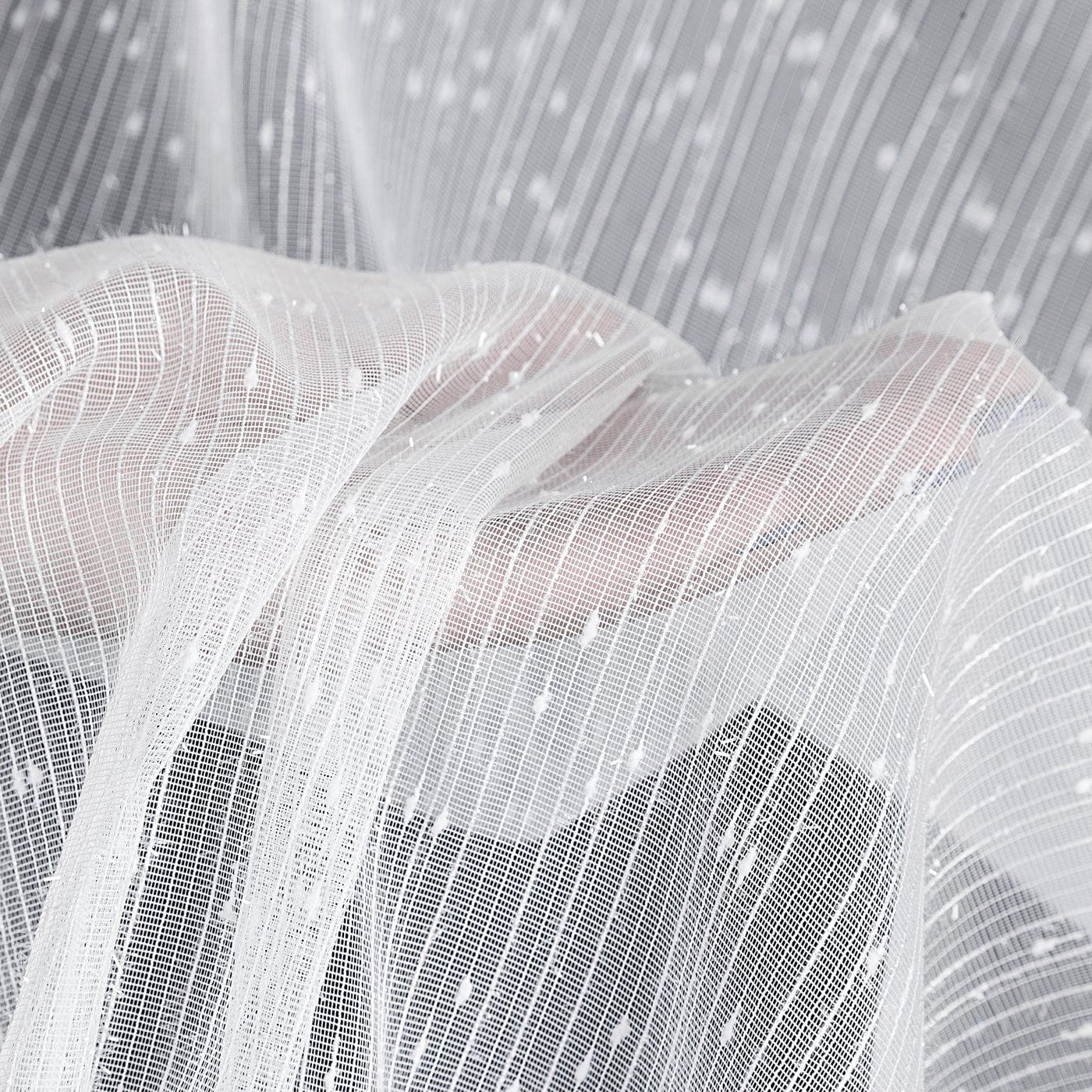 Záclona na míru Nieve, s řasící páskou, bílá, struktura mikrosíťky s dodatkem mohérové nitky a hustým vzorem deštíku