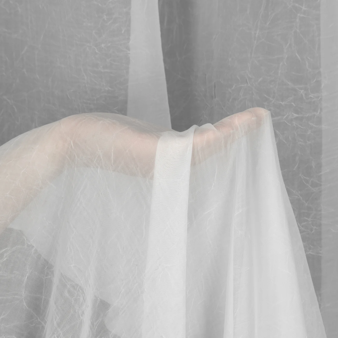 Záclona Crush300, hustší matný krešovaný voál, není třeba žehlit, šití na míru