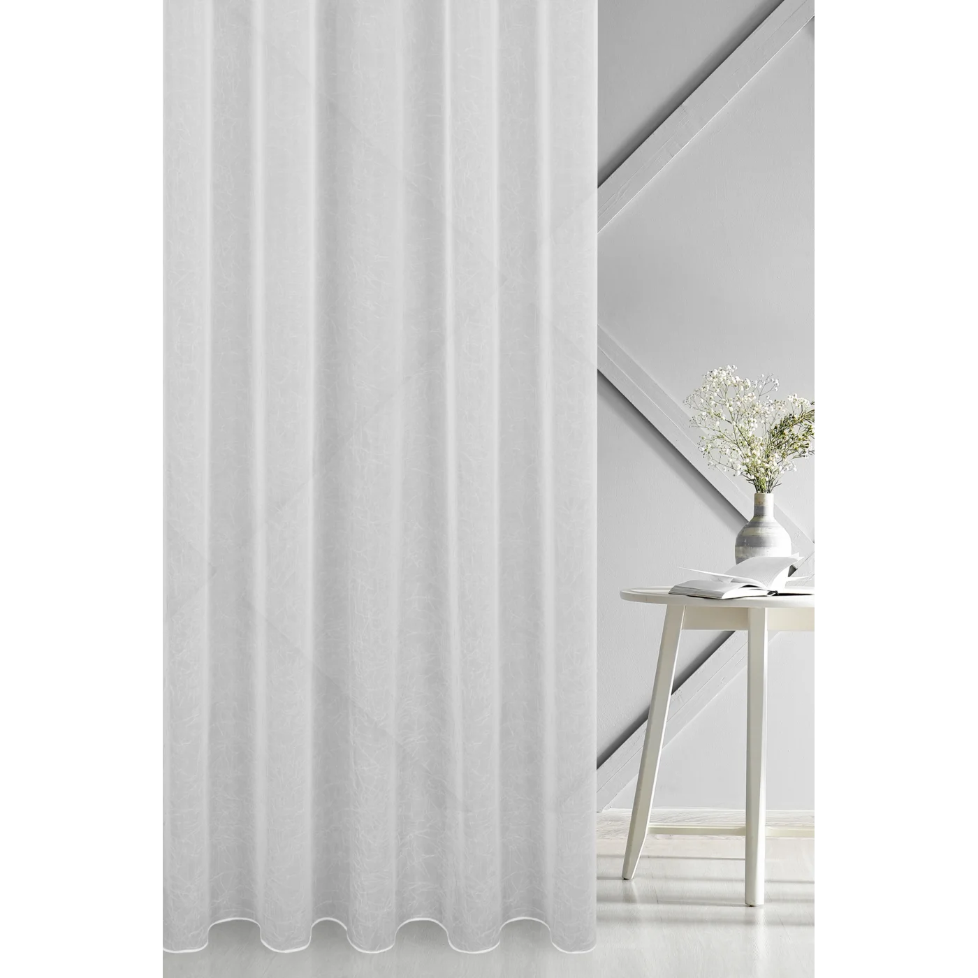 Záclona Crush300, šití na míru, elegantní krešovaný voál, matný, barva bílá, dole zátěžový steh