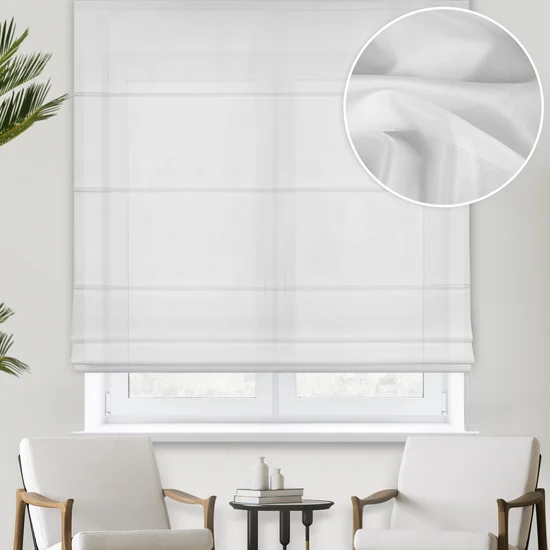 Římská roleta na míru Liva, hustěji tkaná záclonovina s jemným perlovým leskem, barva bílá