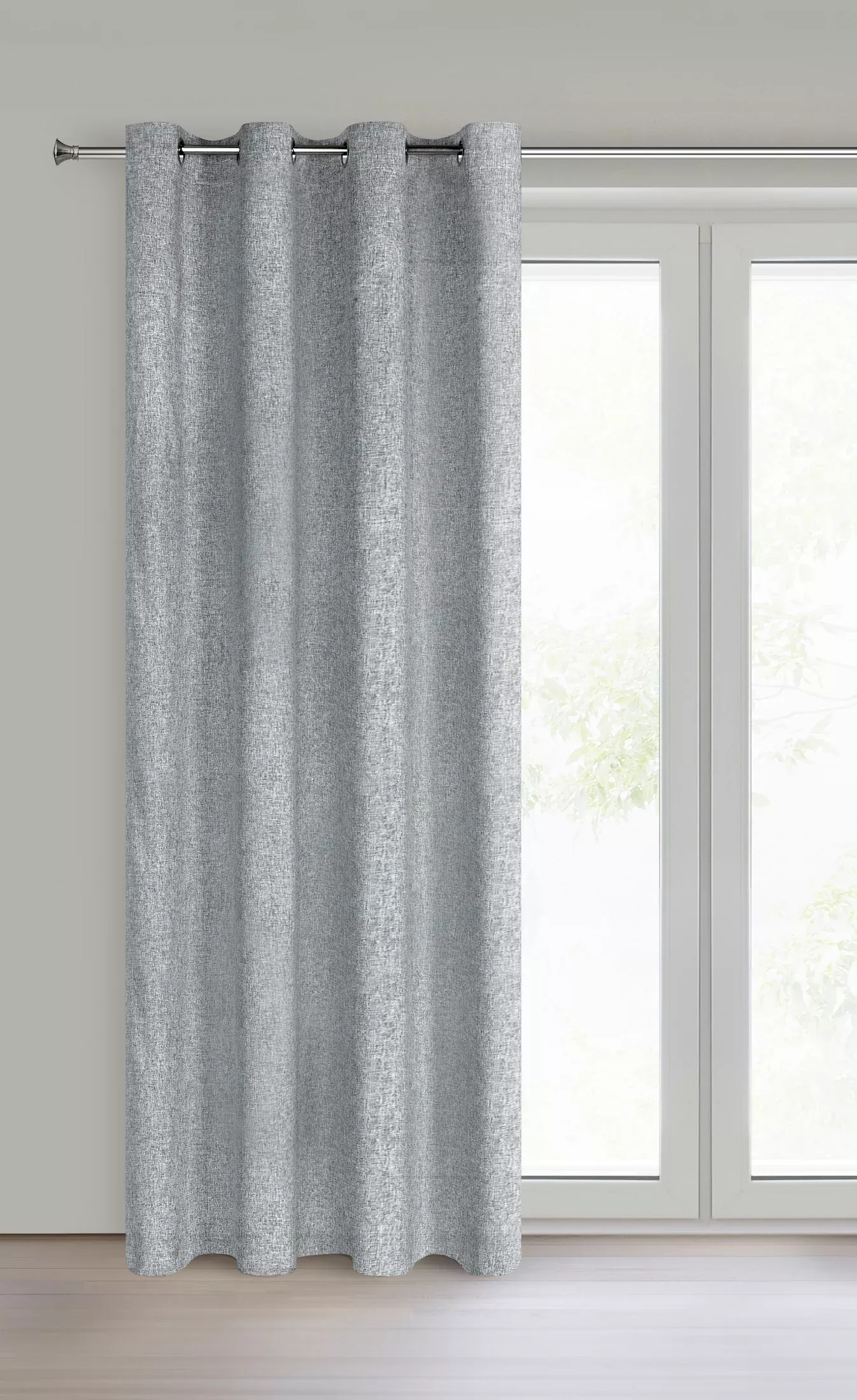 Závěs Adelina, matná látka s viditelným splotem, barva šedá melanž, velikost 140x250cm, na kroužcích, lze zkrátit
