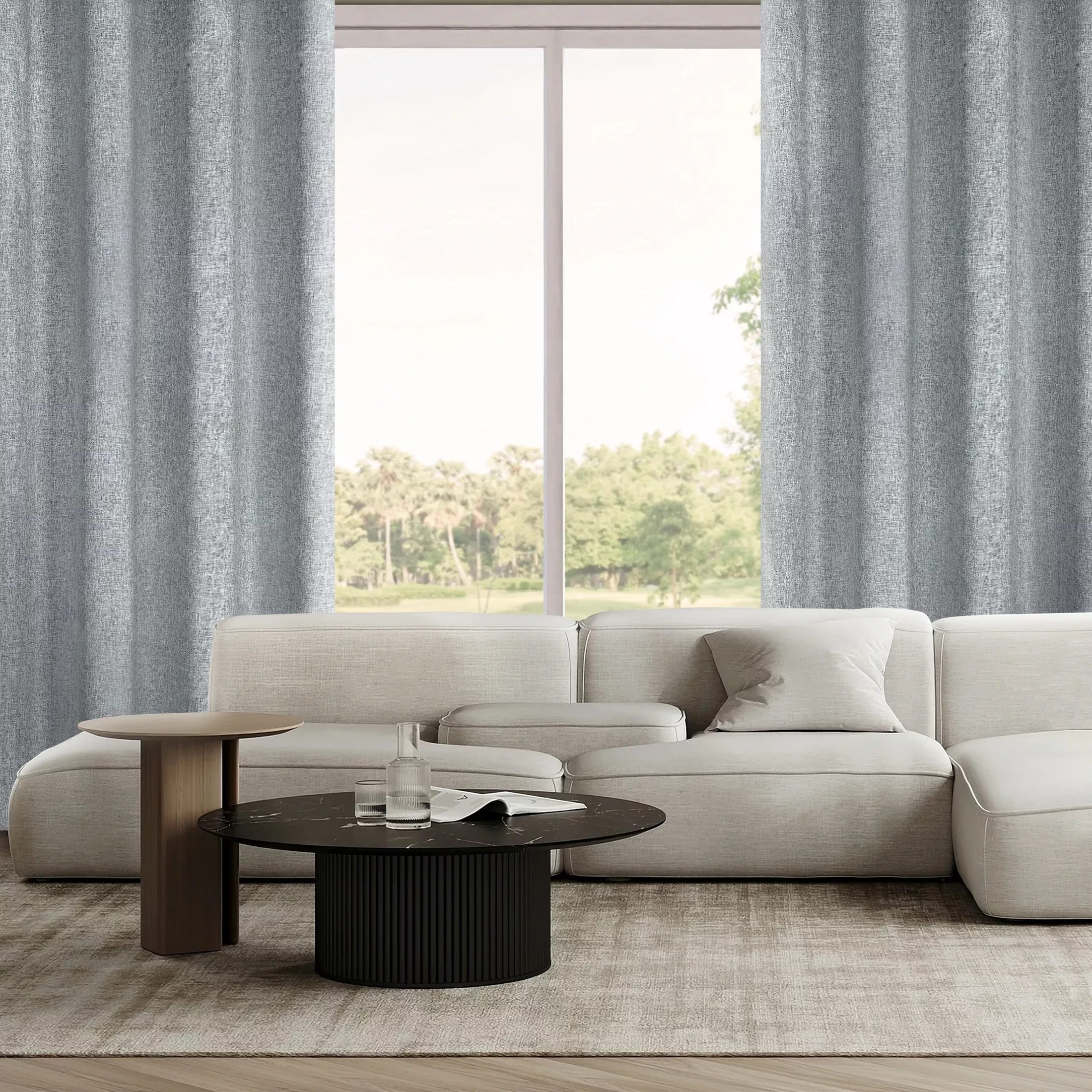 Závěs Adelina, měkká a příjemná látka s viditelným splotem, barva šedá s výraznou melanží