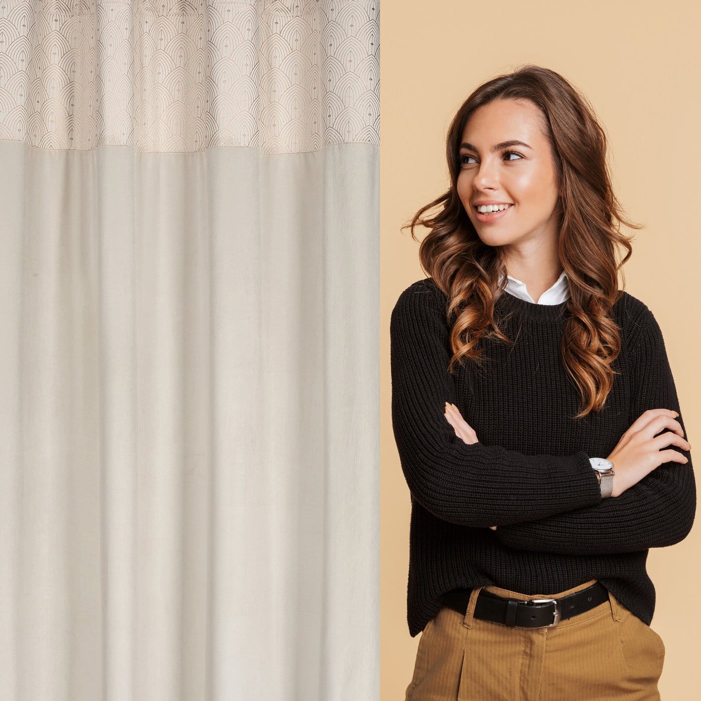 Agnes - závěs v krémové barvě, nahoře s orientálním vzorem, velikost 140x250cm, lze zkrátit
