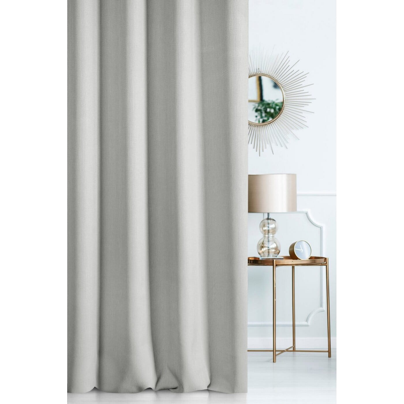 Závěs STYLE ECO, přírodní vzhled, barva šedostříbrná, šití na míru, s řasící páskou