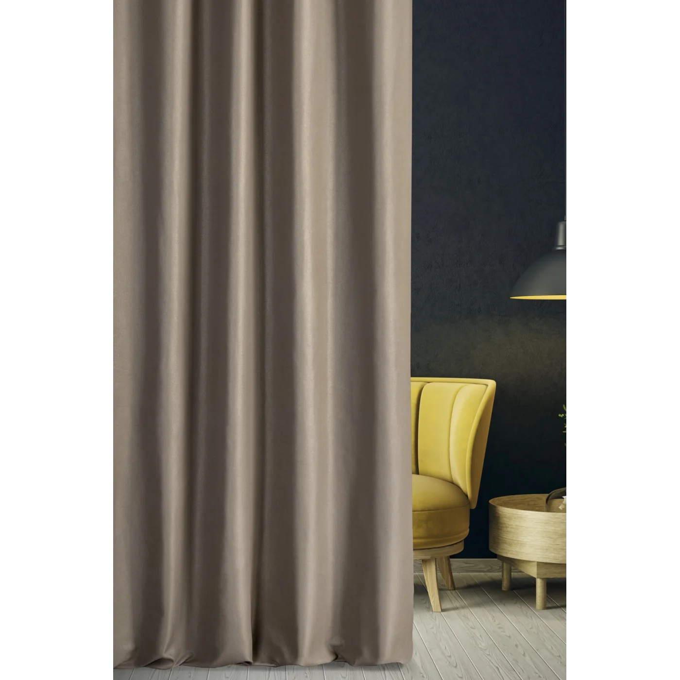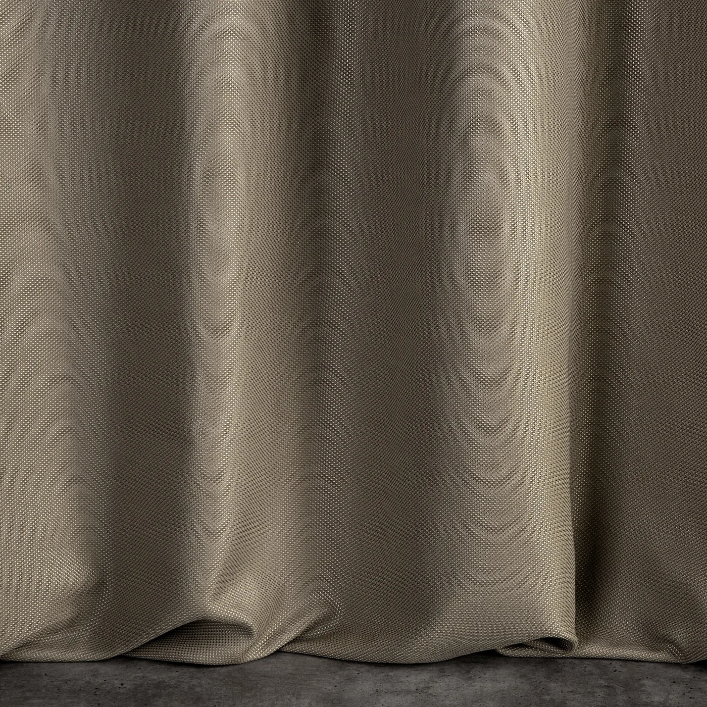 Závěs kolekce Luxor shine elegant, látka s vetkanou lesklou nitkou a viditelným drobným ozdobným splotem, barva hnědo-béžová
