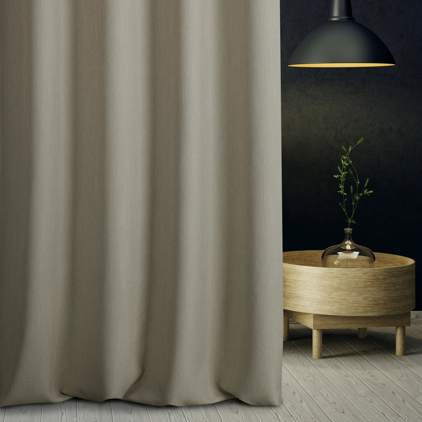 Závěs STYLE ECO, přírodní vzhled, barva šedá melanž, šití na míru, s řasící páskou